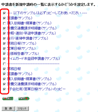 メンバーが新規に申請をする際、一覧に申請書を表示するかしないかの設定を行います。