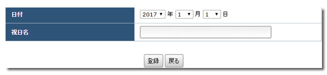 セレクトボックスで日付を選択し、祝日名を入力します。
