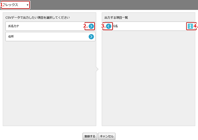 | 1. | CSVデータの出力項目を設定できます。 |