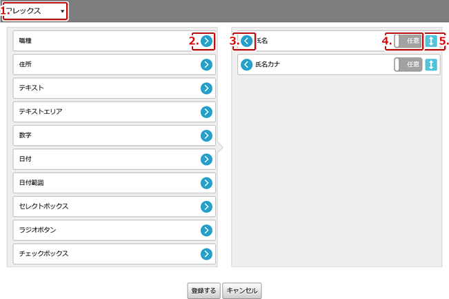 項目は「契約種別設定」で設定した項目と「入力項目設定」で設定した項目になります。