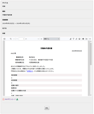 入社後手続の依頼を確認できます。