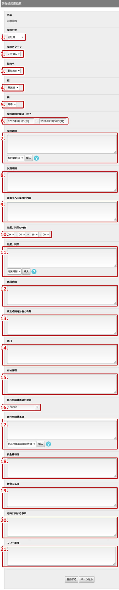 | 21. | フリー項目の内容を入力します。