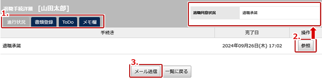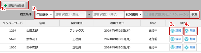| 3. | 退職手続きを編集することができます。 |