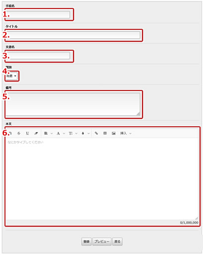 内容を保存する場合は「登録する」ボタン、送信する場合は「送信する」ボタンを押します。