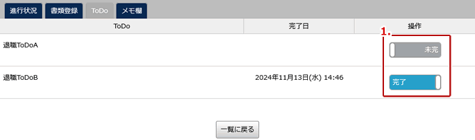 | 1. | 退職手続きのToDoを作成することができます。 |