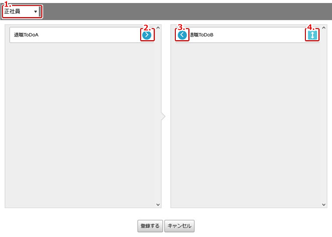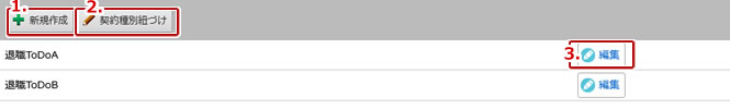 | 2. | 退職手続きToDoと契約種別の紐付けを編集することができます。 |