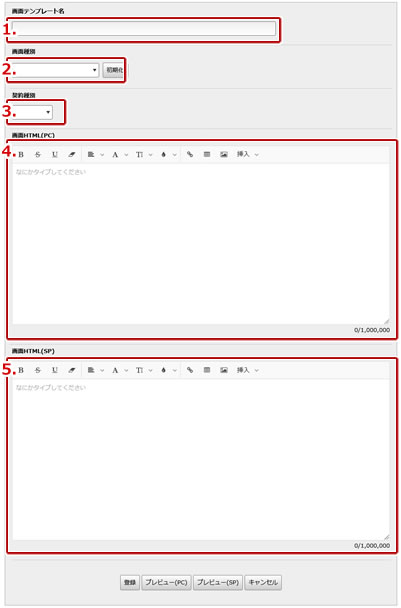 | 4. | パソコンで表示する画面のHTMLを編集します。 |