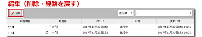 報告書の経路を戻す場合は、報告書の管理リスト左上の