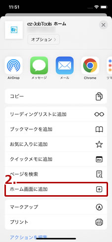 1. safari などのブラウザで ez-JobTools でログインを行い「共有」ボタンを押します。