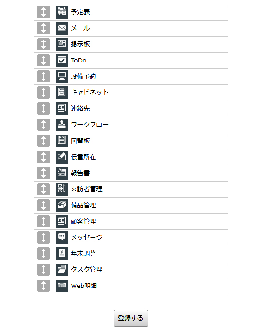 ドラッグして並び替え、「登録する」をクリックすると反映されます。