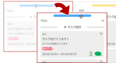 | 1. | こちらのアイコン部分をドラッグ&ドロップすることで、タスクの位置を自由に移動させたり、別ステータスへ移すことができます。![]() |