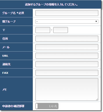 HotBiz8 / TimeBiz をご利用になる組織内の所属部署等をグループとして登録します。