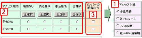共有したい掲示板をアクセス対象の中から選び、ラジオボタンをクリックします。