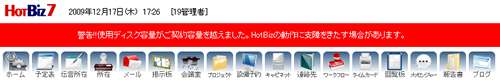 ■ディスク使用容量が100%を超えますと、警告が表示されます。