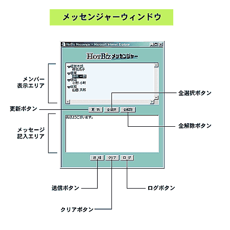 | 更新ボタン | 現在メッセンジャーを起動している最新のメンバーを表示させるためにはここをクリックします。 |