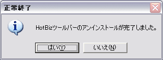 | HotBizツールバーのアンインストールは以下の手順で行ってください。 |